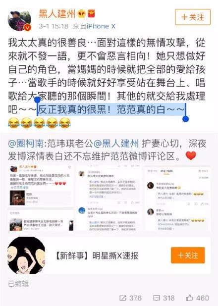 除了陈建州刚刚为维护妻子所发表的黑白论外,还有网友表示,要知道范玮琪可是有首歌叫做《黑白配》的。