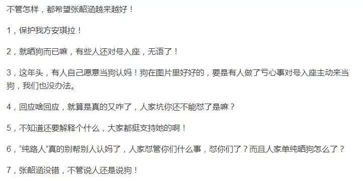 “两只黑白狗不是在图片里好好的嘛,实物啊!要是有人真的做了乱叫博关注的事,心虚对号入座主动来当狗,张韶涵也没办法啊,她又没提谁的名字!”