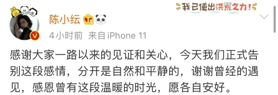 七夕将至,在这个情侣们准备喜迎佳节的日子里,陈小纭和于小彤官宣了分手。
