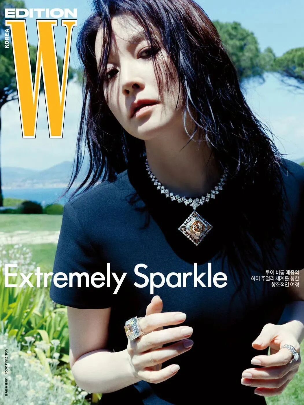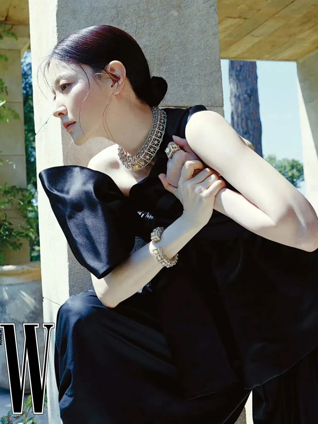 李英爱还与 Louis Vuitton 合作过,2024 年 6 月受邀前往南法圣特罗佩,出席顶级珠宝系列发布活动,还佩戴 LV 高级珠宝为《W》韩国版拍摄了 2024 年 7 月电子刊封面,在南法蔚蓝海岸,贵气又优雅。