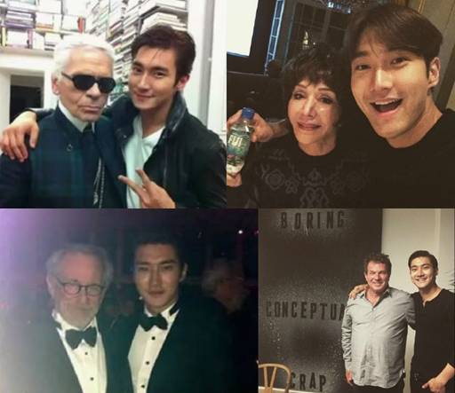 身为“国际崔”也不乏和“老佛爷”卡尔·拉格斐、导演斯皮尔伯格等国际大咖的合照。