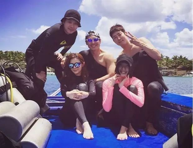【金高银(粉衣)和申河均(后中)参加潜水活动】
