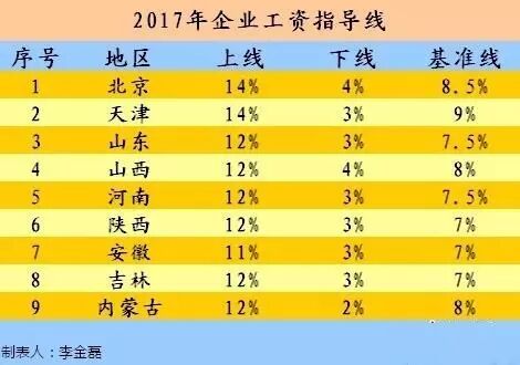 ◆ 近日,9个省区市发布了2017年企业工资增长指导线,为企业给职工调整工资提供了指导性建议。(中新网)