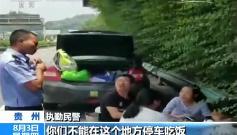 近日,贵州省黔南州高速交警在巡逻时,发现有四人在路边搞起了野炊,锅碗瓢盆一应俱全。民警依法对驾驶员处以记6分,罚款100元的处罚。(综合)
