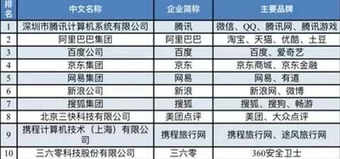 3日,2017年“中国互联网企业100强”榜单在京发布,前十名为:腾讯、阿里巴巴、百度、京东、网易、新浪、搜狐、美团点评、携程、360。(澎湃)