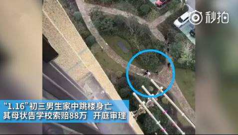 ◆ 男生家中跳楼身亡 母亲索赔学校88万