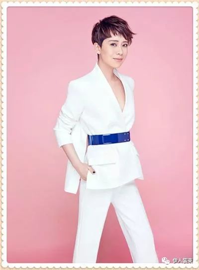 白色的小西服,腰间束上宝蓝色腰带,勾勒出纤细的小蛮腰。下身搭配白色白色西装长裤,双手插在裤兜,霸道女总裁范儿十足。