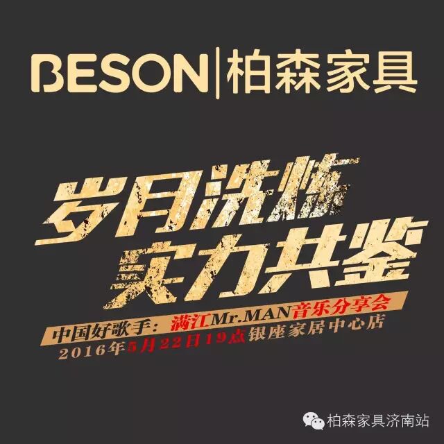柏森家具携手《中国好歌手》满江,开启满江Mr.Man音乐分享会,泉城仅限vip600席,今日起即可品鉴柏森家具,获取vip门票。