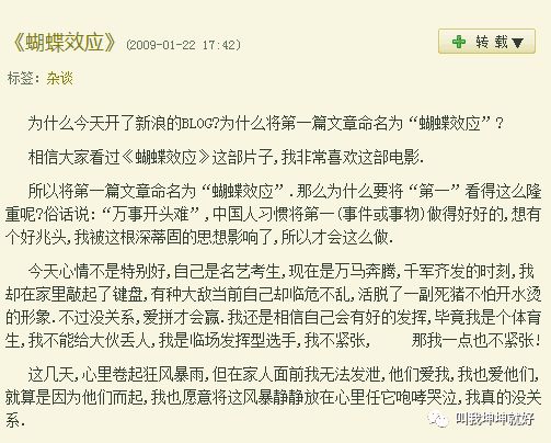 他所有的博客我都看过,而且都留了言,这大概是高中时候的事情了。当时的感觉就是:这是一个阳光积极、多愁善感的大男孩,希望他不要被娱乐圈玷污。