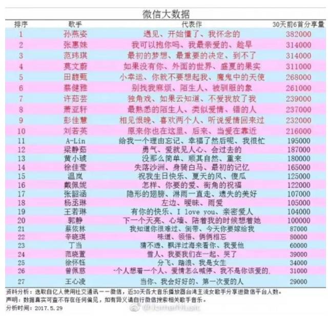 她是港台女歌手中,微信分享音乐数量排名Top 3。