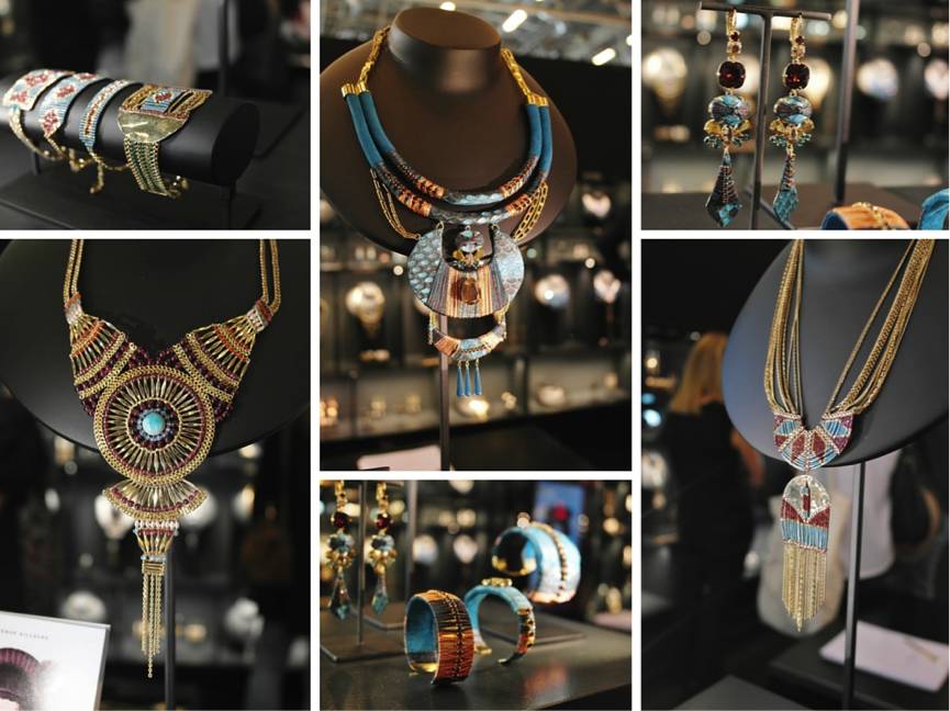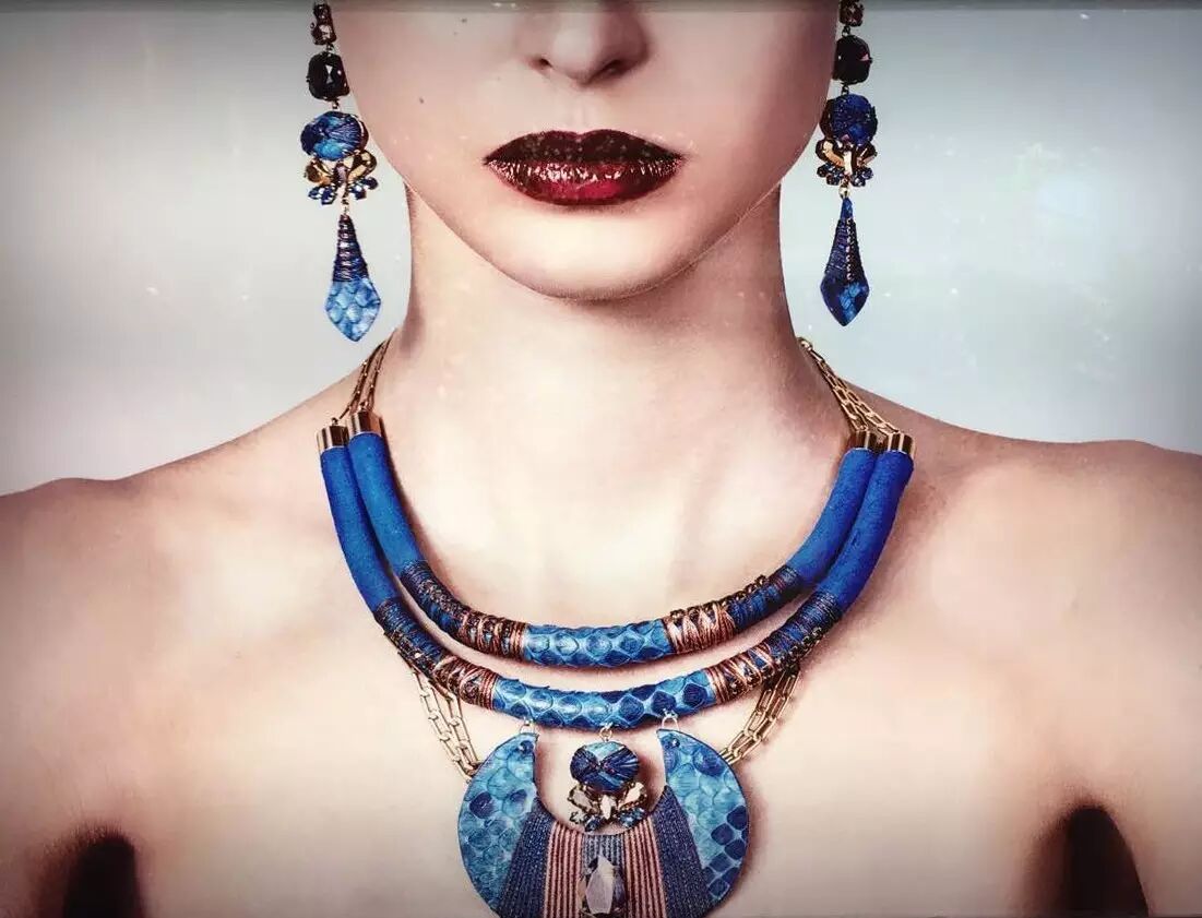夸张的造型,彰显出佩戴者独特的时尚品味。金属,皮革,水晶,皮革等材质的碰撞尽显奢华。编织,图腾等元素的加入,展现出多元文化的融合。既有西方巴洛克风格的奢华,又充满东方神秘的诱惑。