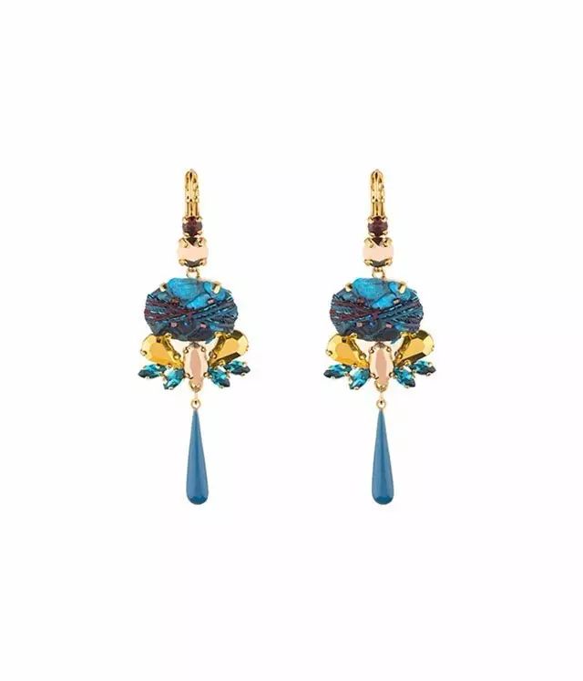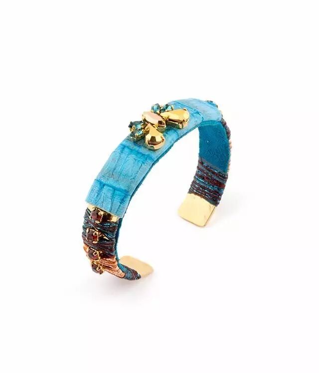 Satellite 冬日凯特琳系列(Winter Kate),以亚马逊雨林为设计灵感,取来自于自然界的蓝色及黄绿色作为主色调。在材质的运用方面,更展现出设计师一贯的理念:强调材质的多样化及个性的风格。施华洛世奇水晶,金属,皮革,蟒蛇皮,以及丝线。纯手工抛光打磨,镶嵌编织,展现出精湛的手工技艺。