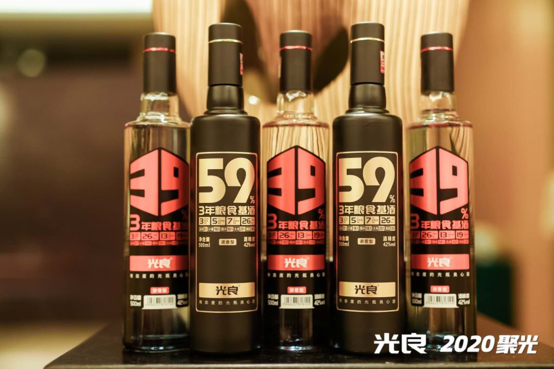 还值得注意的是,当众多光瓶酒还在鏖战低端之时,光良已经乘势升级,开始切割百元价格段的盒装酒市场。据介绍,其主打的战略单品“光良59”平均线下成交价格已经达到70-80元,旺季每月出货量高达100万瓶。
