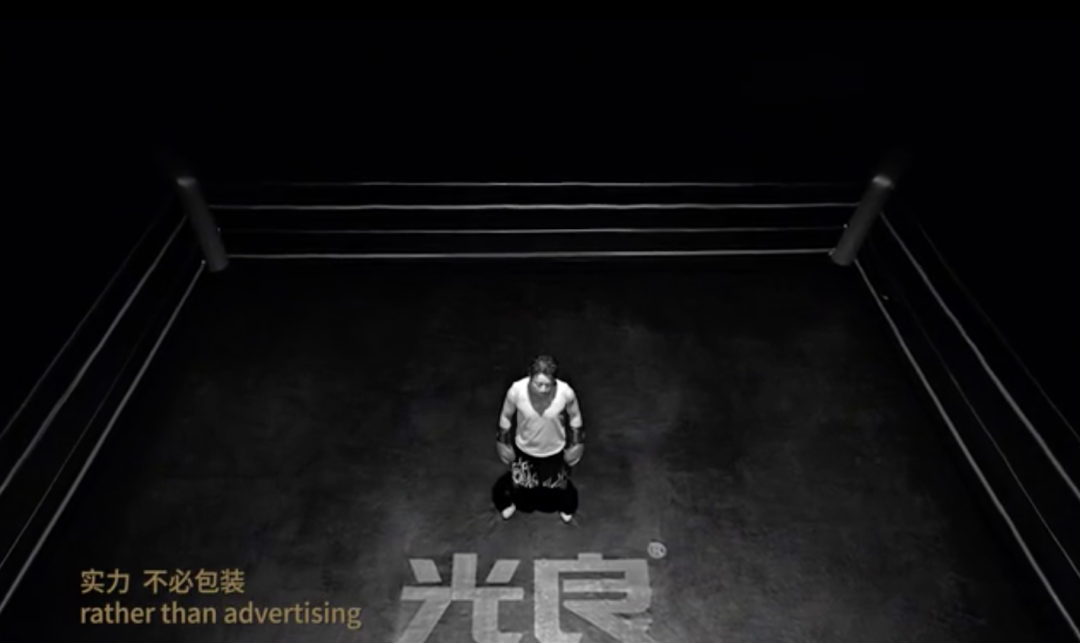 在此前的签约仪式上,光良酒业方面便表示,光良是新崛起的国民自用白酒代表,努力倡导“去掉包装见真诚”的品牌理念,与邹市明所秉承的的体育精神完美契合。这则广告片也将双方“硬核实力派”的形象展示出来。光良酒业,清晰地展示了其品牌定位:去包装化白酒倡导者。