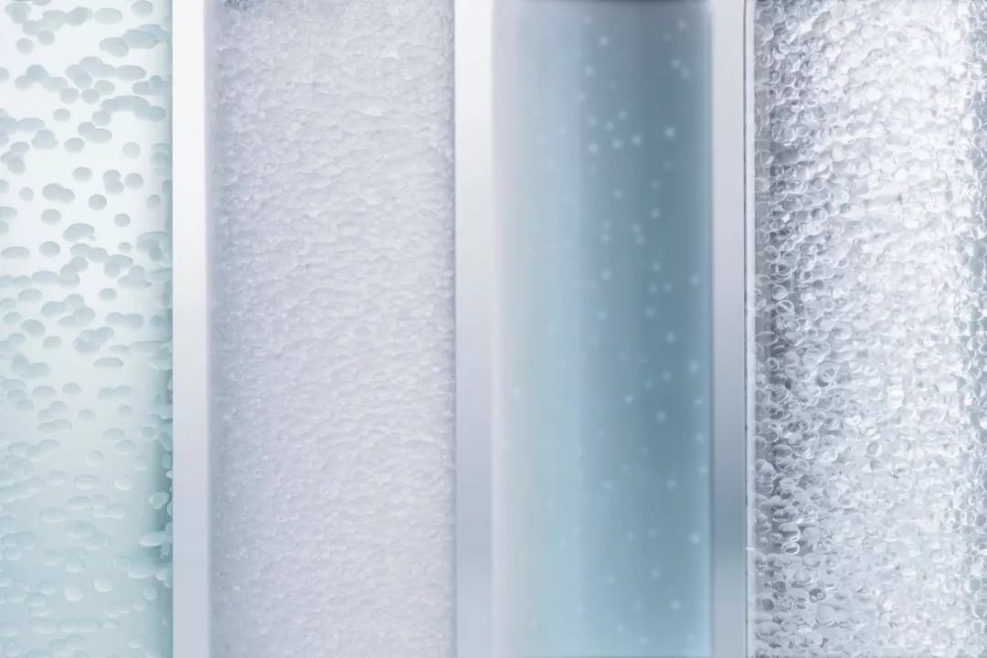 直至倾出瞬间,每滴精华或水中的微囊,才会随着你的推开,融合并作用于肌肤。