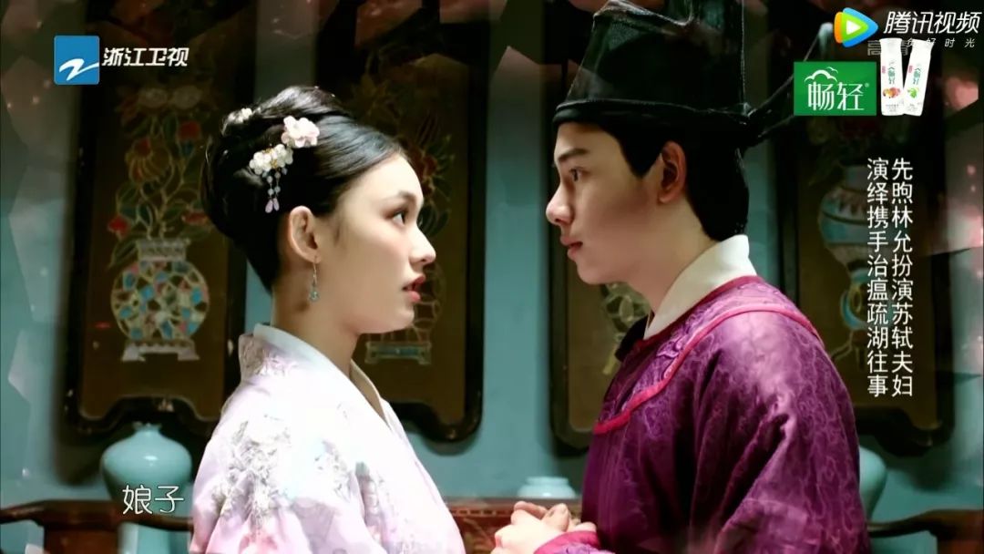 和胡先煦一起扮苏轼夫妻时,她的小脸蛋简直白嫩到反光。
