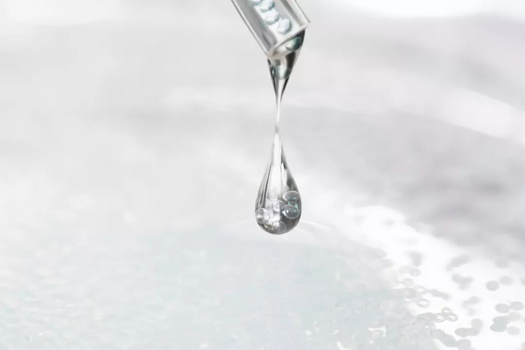 精华液倒出后,最开始类似啫喱,会在皮肤上形成一个水状的凝珠,推开后,能感觉到很清爽的滋润,应该是其中的山茶花精萃油 OFA 成分在发生作用。