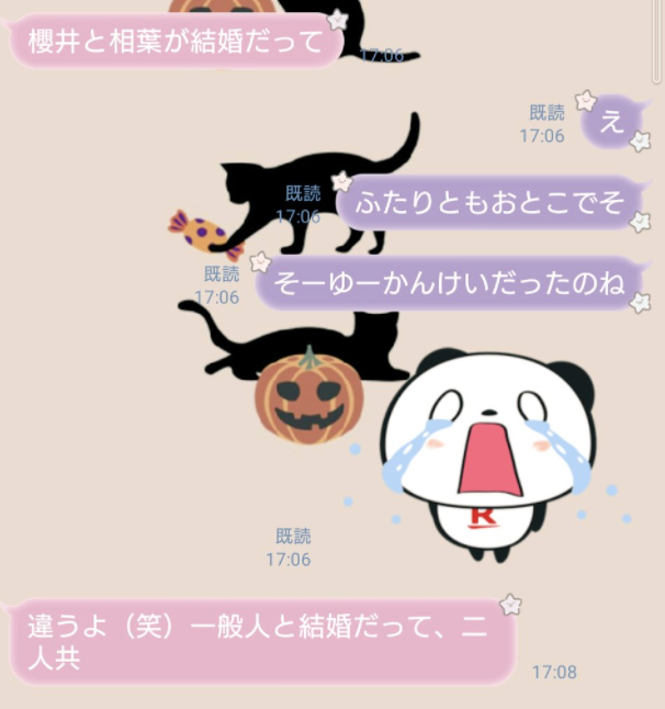 我:不是啦(笑),据说他们两个人都和圈外人结婚啦。