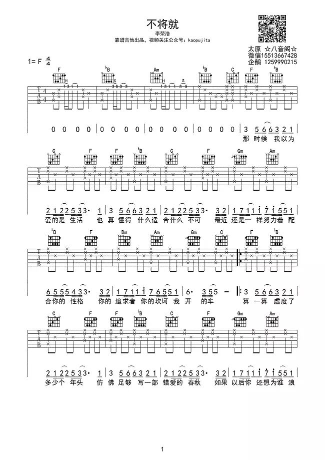 各位琴友,大家好!今天给大家带来八音阁制作的女生版《不将就》吉他示范视频和谱子,希望大家喜欢。