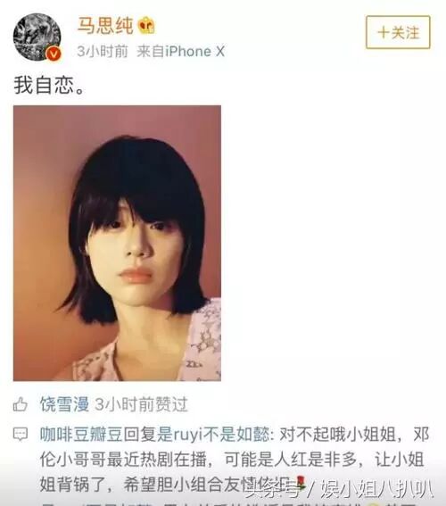 因为这个事情,马思纯还单独发布一条微博名为我自恋,来进行 辟谣