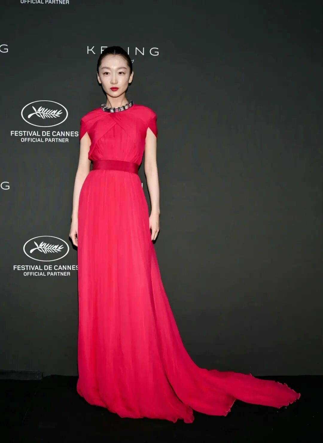 而侧开叉的设计,又融入了中国旗袍的元素,看起来典雅端庄,更有东方女性的韵味。周冬雨是非常适合穿红色。而此次去戛纳电影节,周冬雨的造型也并非只有这一套红色造型。