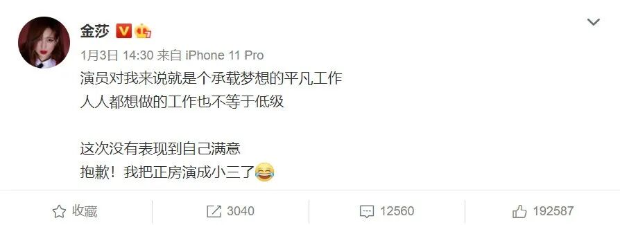 我倒觉得金莎的回应挺得体:演员对我来说就是个承载梦想的平凡工作,人人想做的工作也不等于低级。