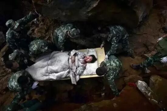 陈庆港在汶川地震拍出的照片,获得了荷赛金奖(荷赛奖是世界新闻摄影比赛WORLD PRESS PHOTO——记者注)。那张照片俯拍了一群士兵在巨石缝隙中运送伤员。《走出北川》,带着某种宗教意味。