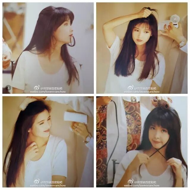 八九十年代的女星,流行佩戴各种夸张的配饰。周慧敏反其道而行之,总是干干净净,一头垂坠及腰的长发。