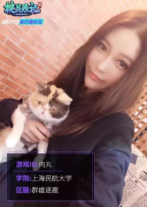 她是来自上海民航大学电力系统专业的“肉丸”同学,而“肉丸”也可能只是她抱的那只猫的名字,爱宠物,爱猫眯,爱生活!