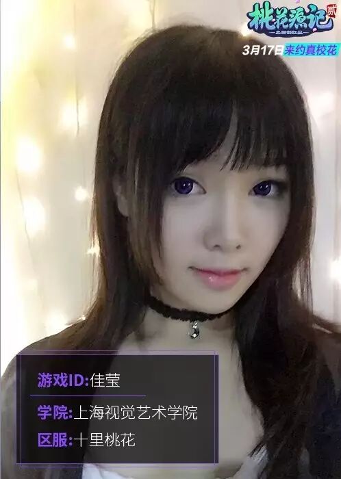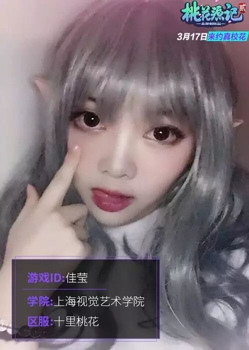 上海视觉艺术学院视觉传播专业的佳莹同学,一双精灵般的勾人的双眼,溅开了无数少男心底的涟漪,喜欢COS,典型的二次元少女,更在大选中放下狠话“不管男女老少我统统拿下”,百万代言势在必得!