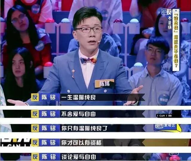 陈铭在《奇葩说》中说:你只有温暖纯良了,你才可以有资格谈论爱与自由