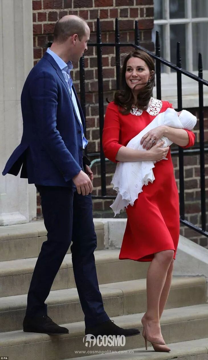 当地时间4月23日早晨六点,凯特王妃进入医院,中午十一点顺利产下男婴。下午六点,凯特王妃身穿Jenny Packham红色定制裙装抱着小王子与媒体见面。