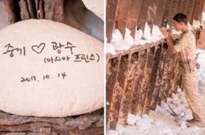 还有石头上方文字“仲基❤光洙(亚洲王子)2015.10.14”的照片
