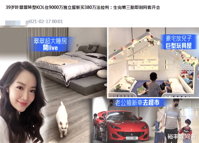 其实叶翠翠除了拥有幸福家庭以及近亿元的豪宅(市值9000万)之外,还购买了380万的法拉利。