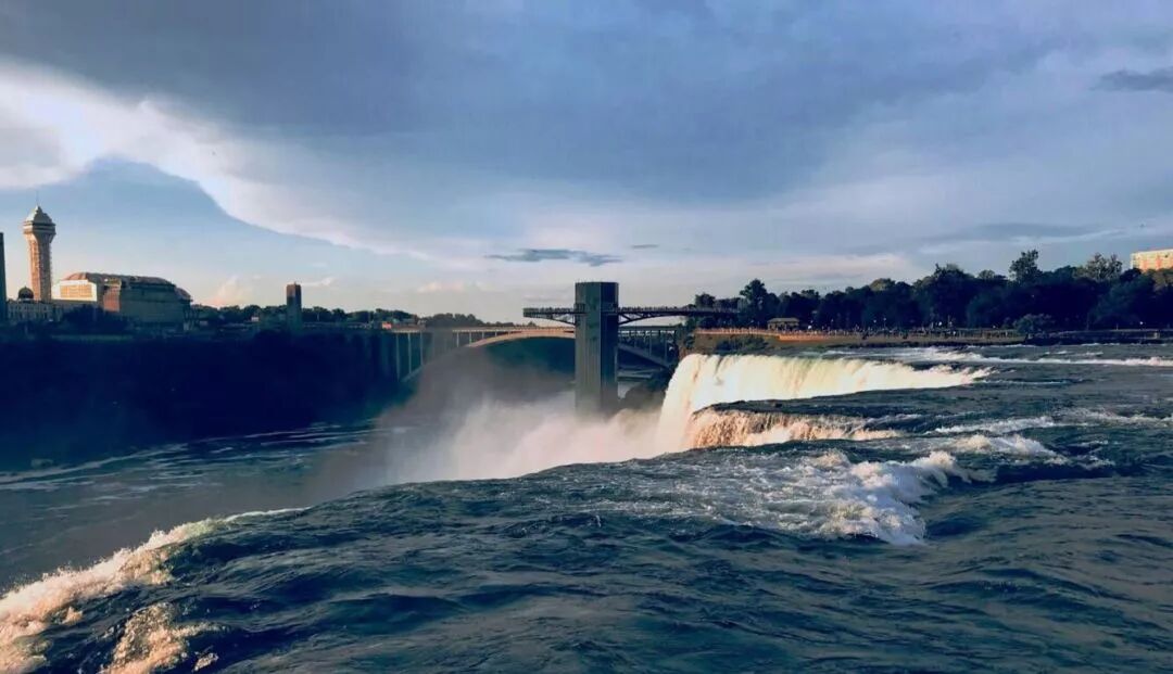 水声飞流直泻的回音,远远地就如雷贯耳而来,举世闻名的七大奇观之一的尼亚加拉大瀑布映入眼帘。整个感觉除了震撼还是震撼,太壮观了,这种壮观是光看照片无法体会出来的,一定要身临其境才会明白。