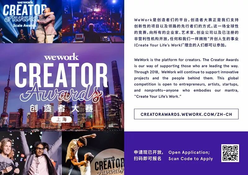 今年的WeWork创造者大赛首次进入中国,并将在4月于上海举行决赛。