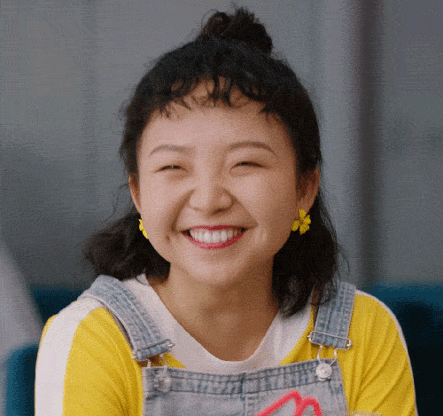 眉毛未加修饰,睫毛也不是很长,但胜在皮肤状态好,以及藏不住的盈盈笑意。