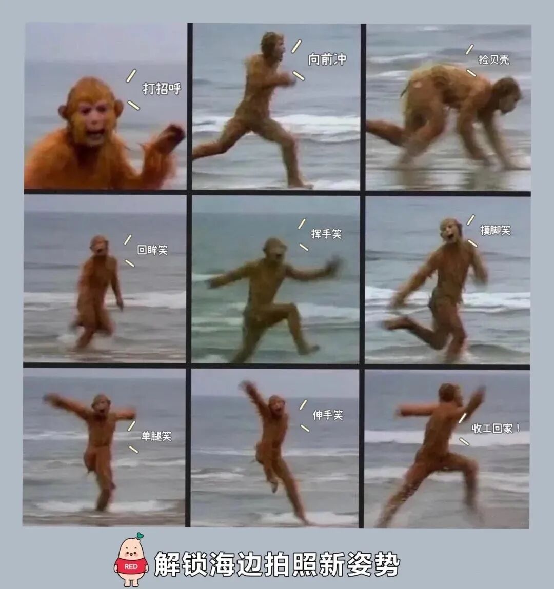 而这种拍照的造型竟然始于孙悟空,他带着一道金光横空出世,在石头中蹦出来的那套动作奠定了他摆拍界的鼻祖地位。此后的每一个pose都逃不出俺老孙的影子。照着学,准好看。