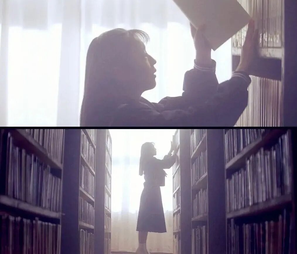 同样是图书馆的白窗帘,在朦胧的背光中,少女把书放回书架。像钱钟书先生写的那般,由着书,有借有还,暧昧的氛围开始了。