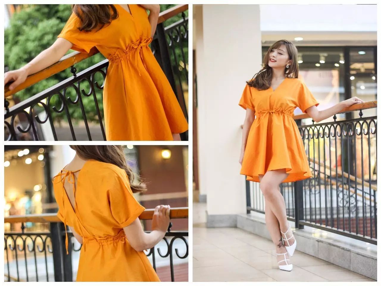 很多人肯定觉得这条裙子看起来并不起眼,但这条裙子宽松的上身剪裁和系带收腰设计相映衬,就算是微胖或者腰身不明显的girls也能有S型的曲线美,真的是超级棒!