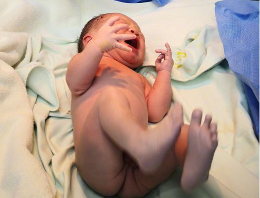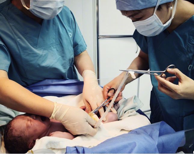 配图中有一些我们之前没有看到过的照片,包括医生给小宝贝剪脐带,还有小宝贝刚出生时的哭泣,以及刚出生的体重测量。