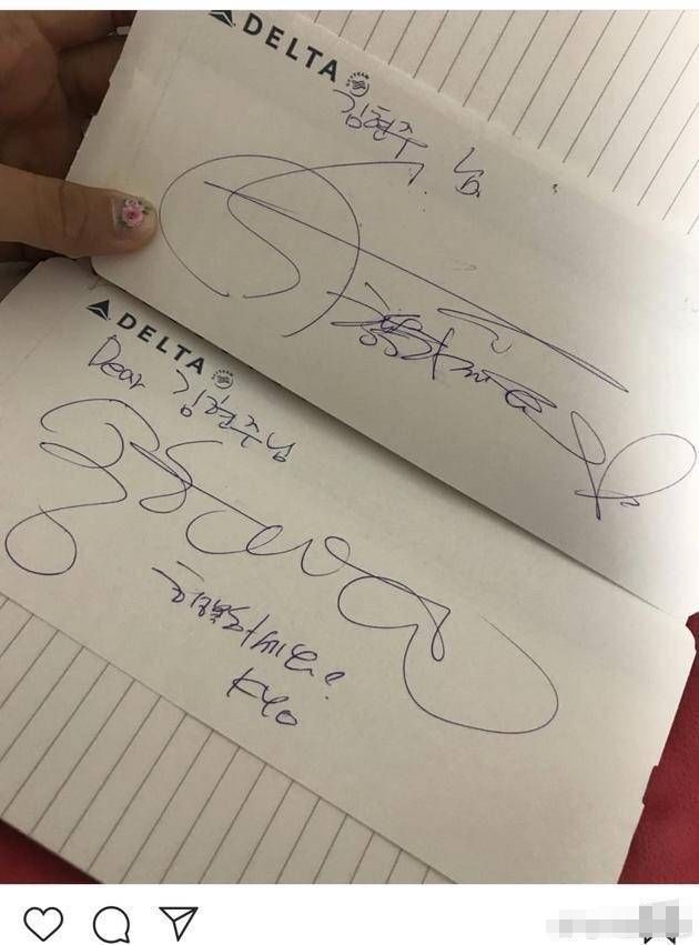近日,有网友在飞机上偶遇宋慧乔宋仲基夫妇,并且还得到双宋的签名照,而昨天刚好是两人公开恋情一周年的日子,难道两人这是要去度假庆祝吗?