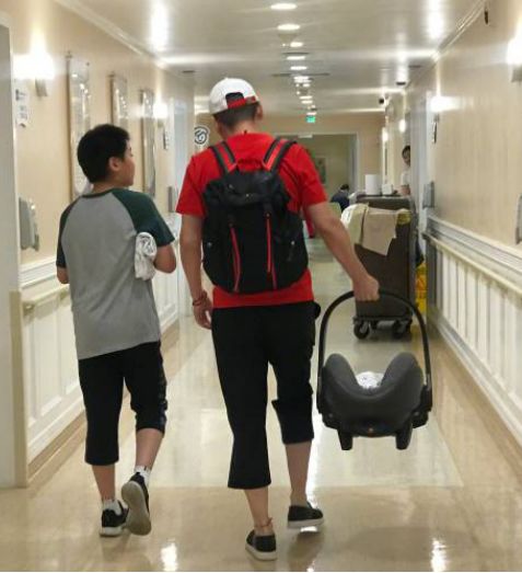 今天还有网友曝出偶遇蒋勤勤和丈夫陈建斌带着两个儿子出院的照片,照片中陈建斌穿着红色T恤,戴着墨镜和帽子酷劲十足,手上小心翼翼的提着婴儿提篮,蒋勤勤坐着轮椅,身材消瘦,但精神状态很好。