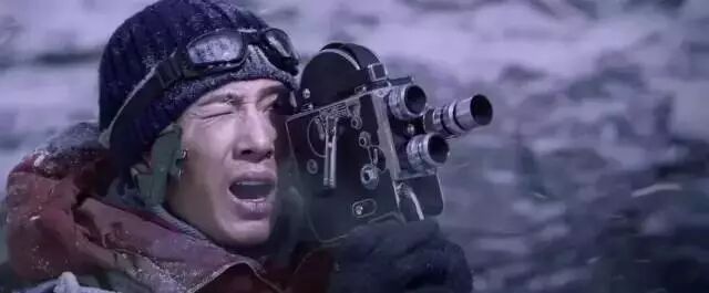 但《攀登者》改编选择的是一个贯穿全片的推进剧情发展的重要细节点,就在那个记录登顶的摄影机上。