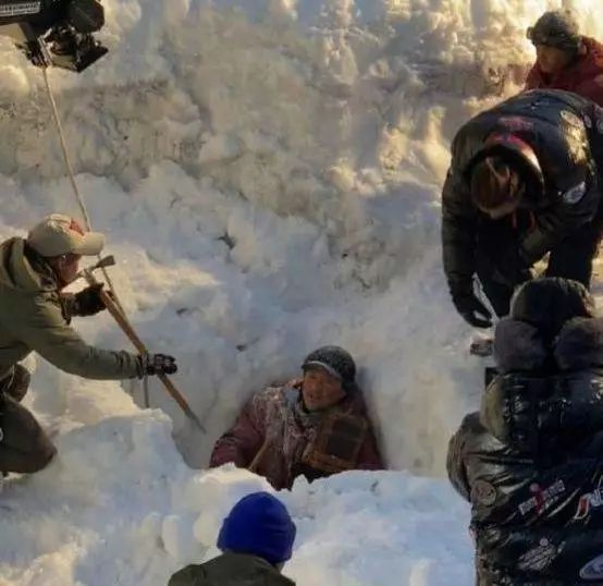 拍摄的时候体感温度大概在零下二三十度……当你把脚放到雪上的那一刹那,就像熨一件湿衣服,“滋啦”一声,……就好像几把刀子在划你的脚,划你的脚心。一开始的几秒还可以扛,但超过大概十秒就不行了,站都站不住了。