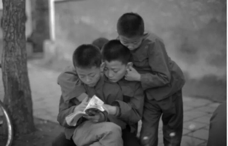 Christine女士说起她最喜欢的照片有两张,一张是1984年在上海的民工住宅拍摄的两位妇女,她回忆道:“当时,我们就在那里聊天,两位女士非常友好地给我们介绍她的家庭,工作生活,当时场景真的非常融洽温馨,两位女士讲着讲着,开怀大笑了起来,我就立马捕捉到了这样一个场景。还有一张摄于1985年的河南开封,几个小孩围坐在街道边,凑合着挤在一起看漫画书,边看边笑,一个小男孩撑在一个男孩肩上,扯着他的耳朵,我觉得他们真的太可爱了。”