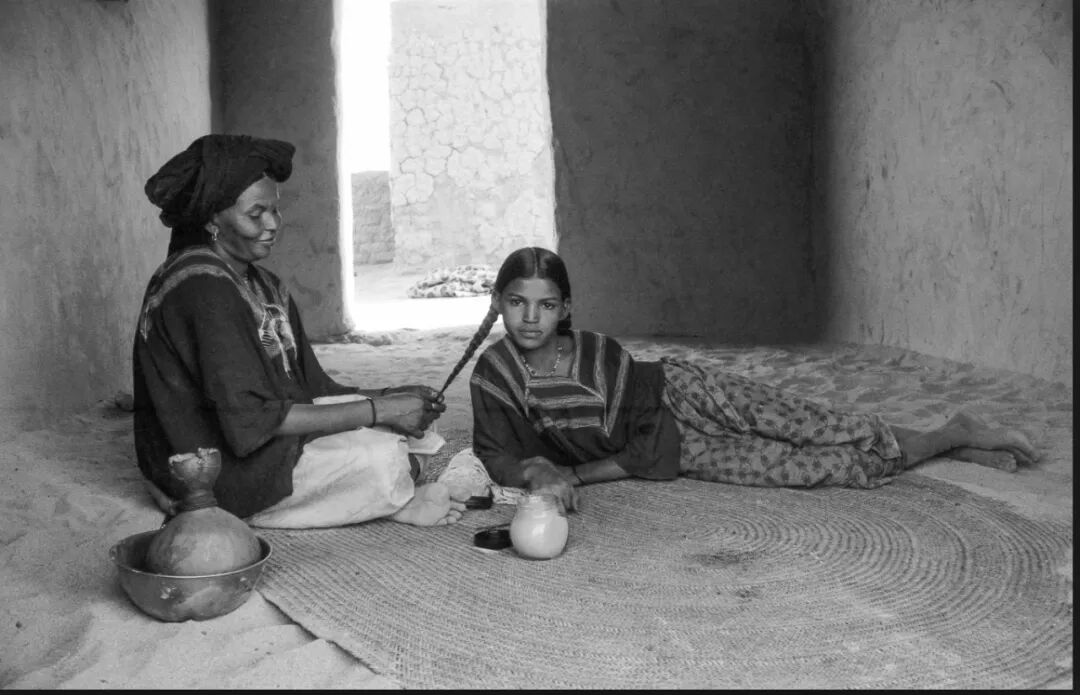 其实,西撒哈拉区域的政治情况一直极为复杂, 70年代,当时的西撒哈拉被西班牙占领,从而促成了当地武装组织波利萨里奥阵线的成立,并打响了反抗西班牙的第一枪,在西班牙宣布撤军的第二天,阿拉伯撒哈拉民主共和国宣布成立,该组织现如今也是该国的执政党。上世纪80年代,摩洛哥与波利萨里奥阵线形成对峙的僵局,就是在这样一个时间点,在人身安全与食物安全也得不到有效的保障的情况下,Christine de Grancy 选择前往此地,并在那里记录下了非常珍贵的当地图瓦雷克游牧民族的生活照片。而后并整理成为书籍,命名为“Die Sahraouis. Söhne und Töchter der Wolken´´ 。