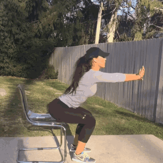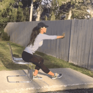 step 3:单只腿向前伸,臀部向下,但不要坐在椅子上。共3组,每组15个。3个步骤做完后,记得拉伸,臀部有酸痛感才算做到位了哦~