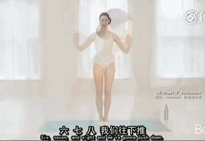 step1:收腹,张开肩膀双臂伸长至两侧,落下手肘,再抬起来。反复做,想象着自己是一只挥舞着翅膀的天鹅。