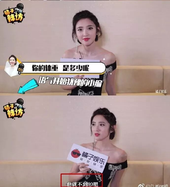 而被追问本人的体重时,她则傲娇地表示:自己就是不满45KG的标准身材。